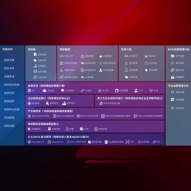 医疗器械产品上市前,,,要熟悉严格与繁复评审标准,,,整理分析监管机构指导文件中的海量信息。。。企业急需一个智能化解决方案,,,,提升知识管理效率,,,提高评审通过率,,,以提升其市场竞争力。。